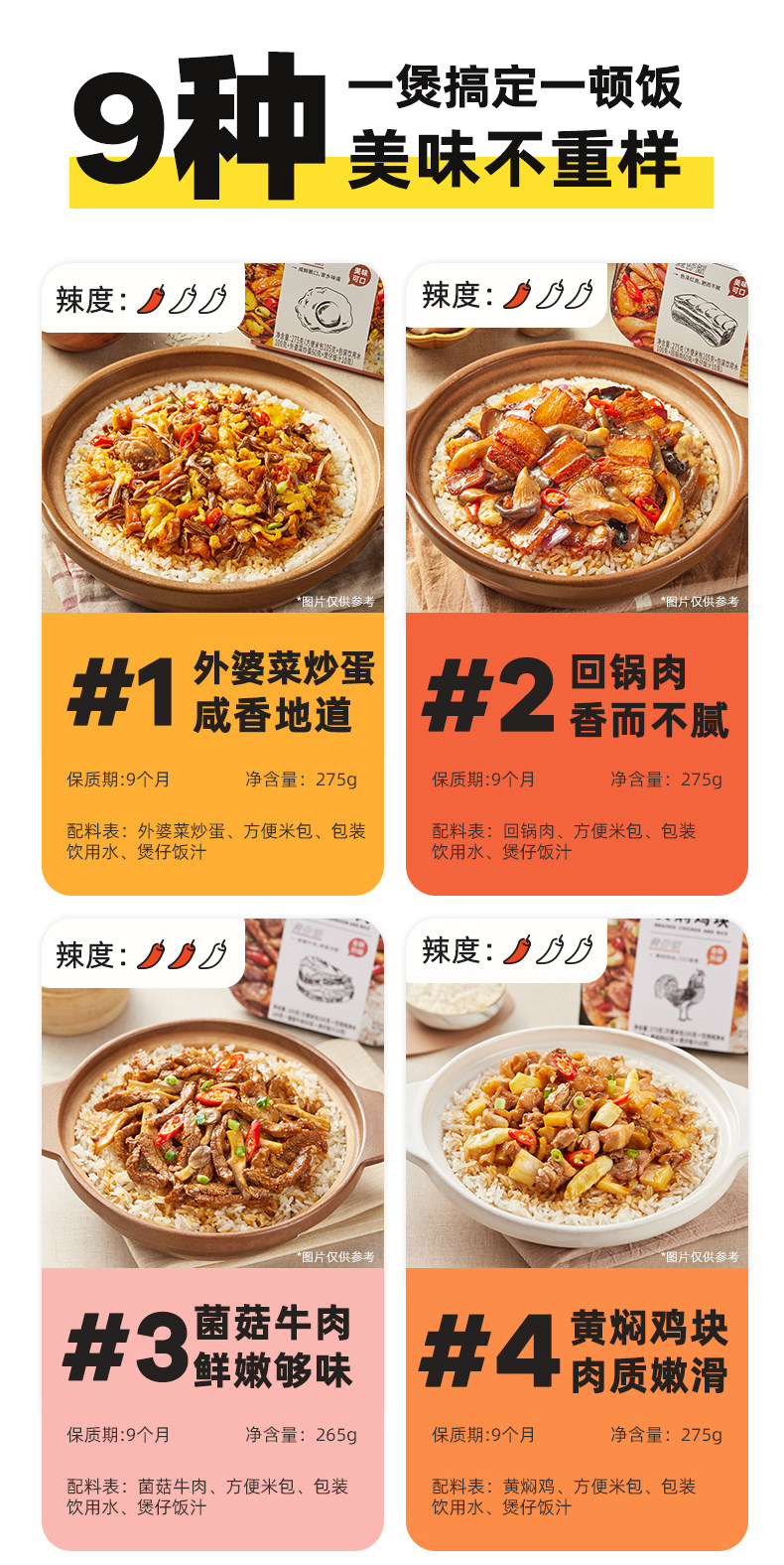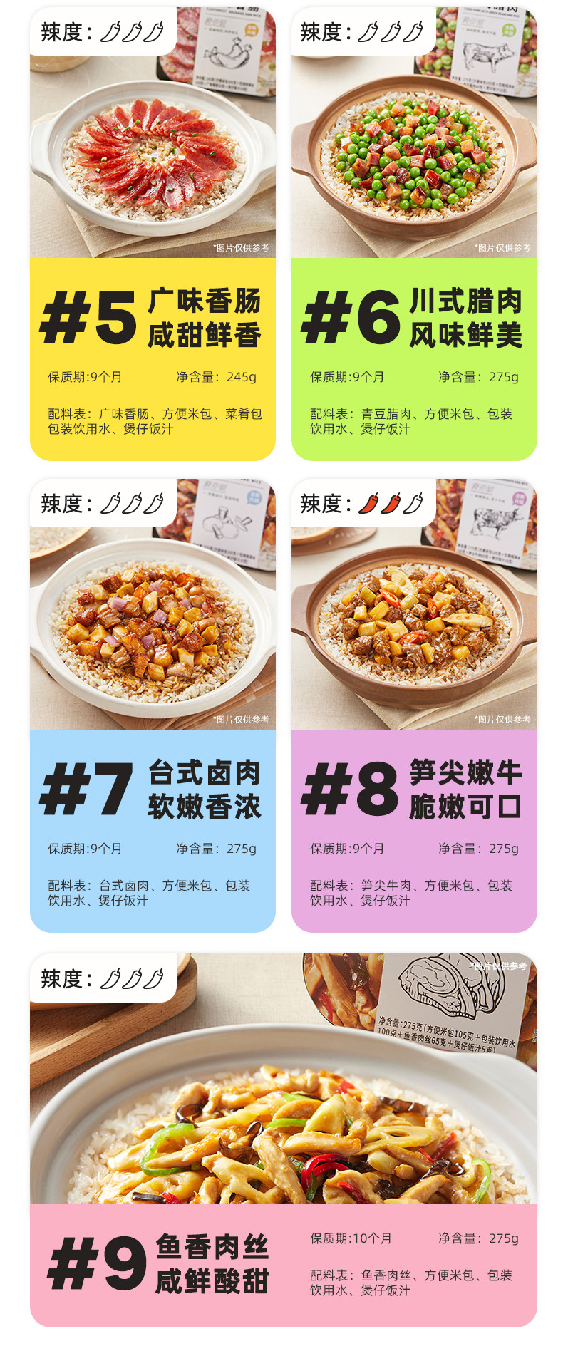 【推荐3盒装】菌菇牛肉+笋尖嫩牛+红烧牛肉 【经典口味5盒装】菌菇牛肉+笋尖嫩牛+红烧牛肉+广味香肠+台式卤肉 【囤货10口味装】全家福10口味 【青春尝鲜版3盒】菌菇牛肉+红烧牛肉+台式卤肉 【青春尝鲜版3口味6盒装】菌菇牛肉*2+红烧牛肉*2+台式卤肉*2 菌菇牛肉 笋尖嫩牛 广味香肠 台式卤肉 川式腊肉 红烧牛肉饭 回锅肉 鱼香肉丝 外婆菜炒蛋 黄焖鸡