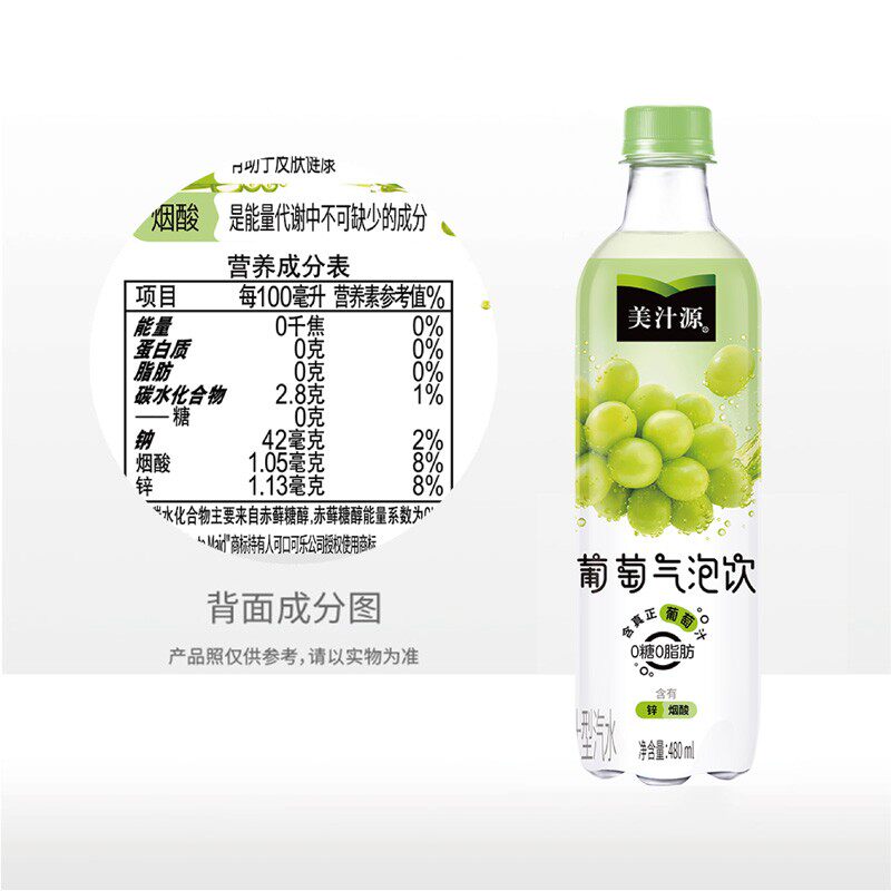 美汁源葡萄气泡水480ml*12-161239