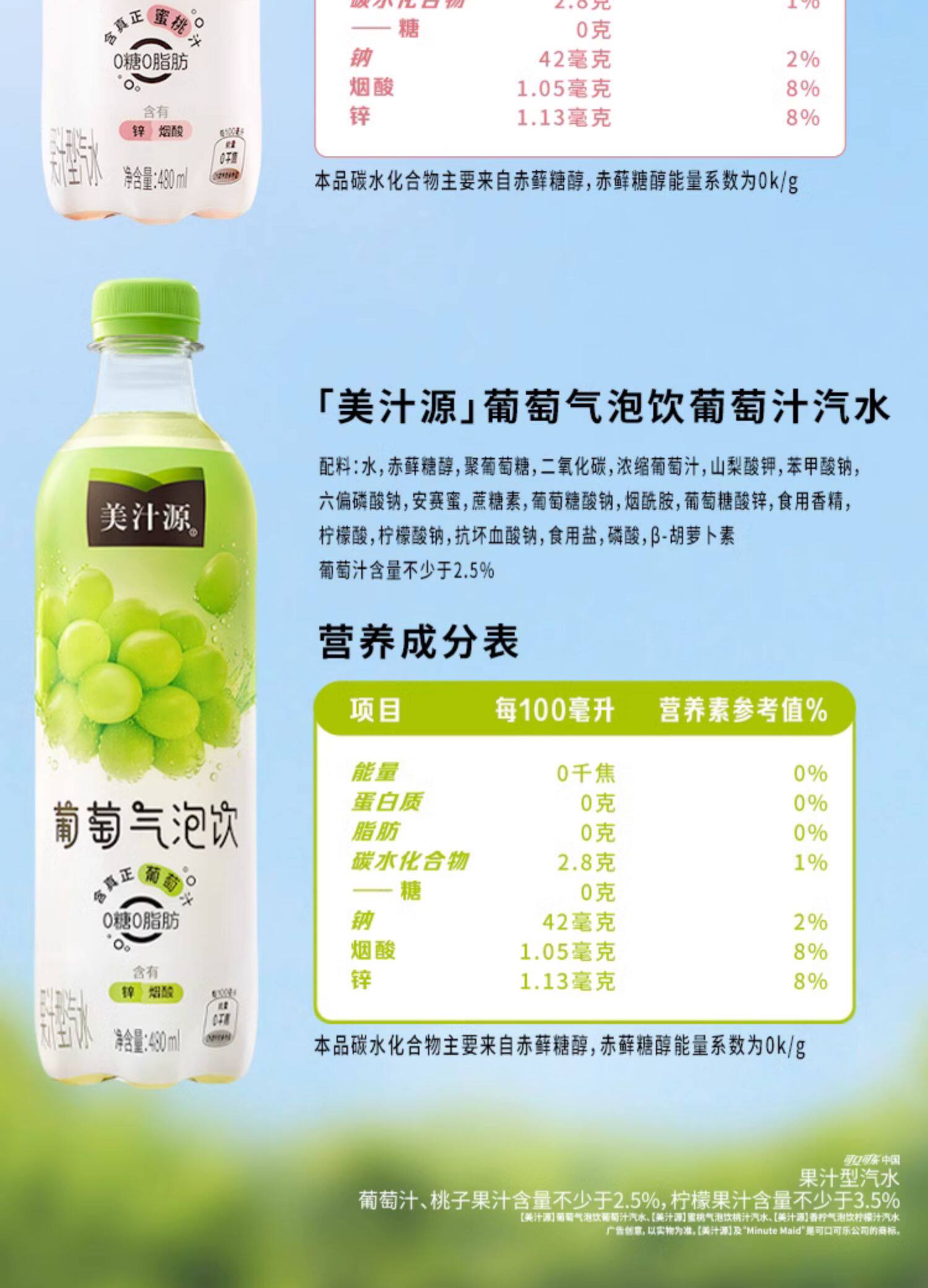 葡萄味气泡水480ml*12 蜜桃味气泡水480ml*12