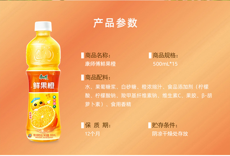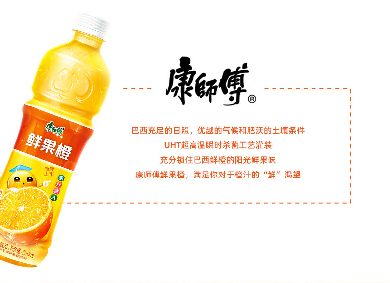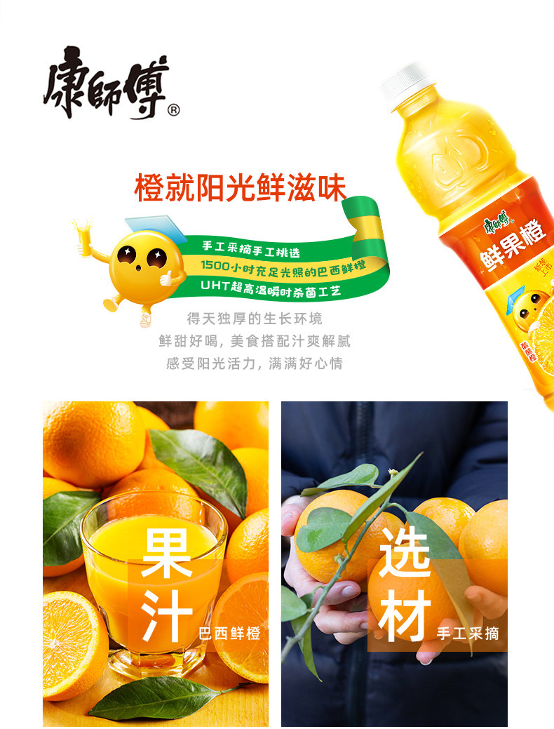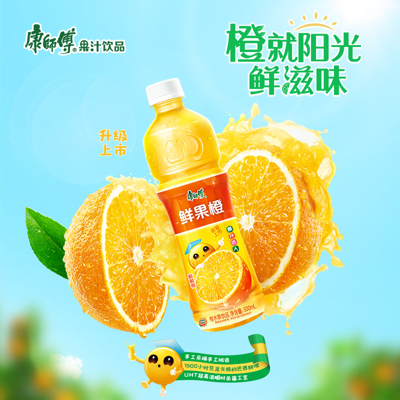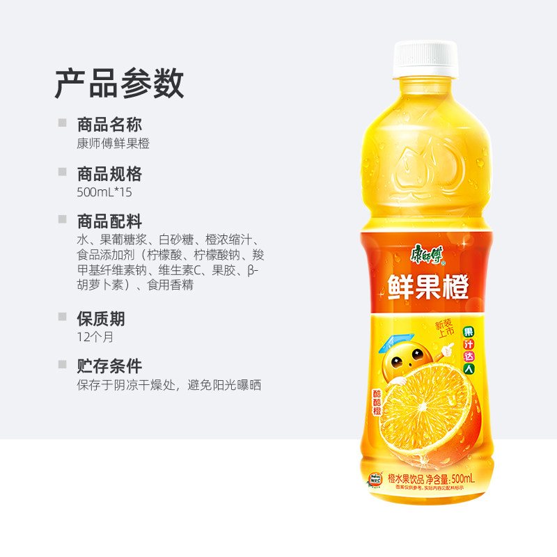康师傅水果饮品(新老包装随机发货)450ml/500ml橙汁*15瓶