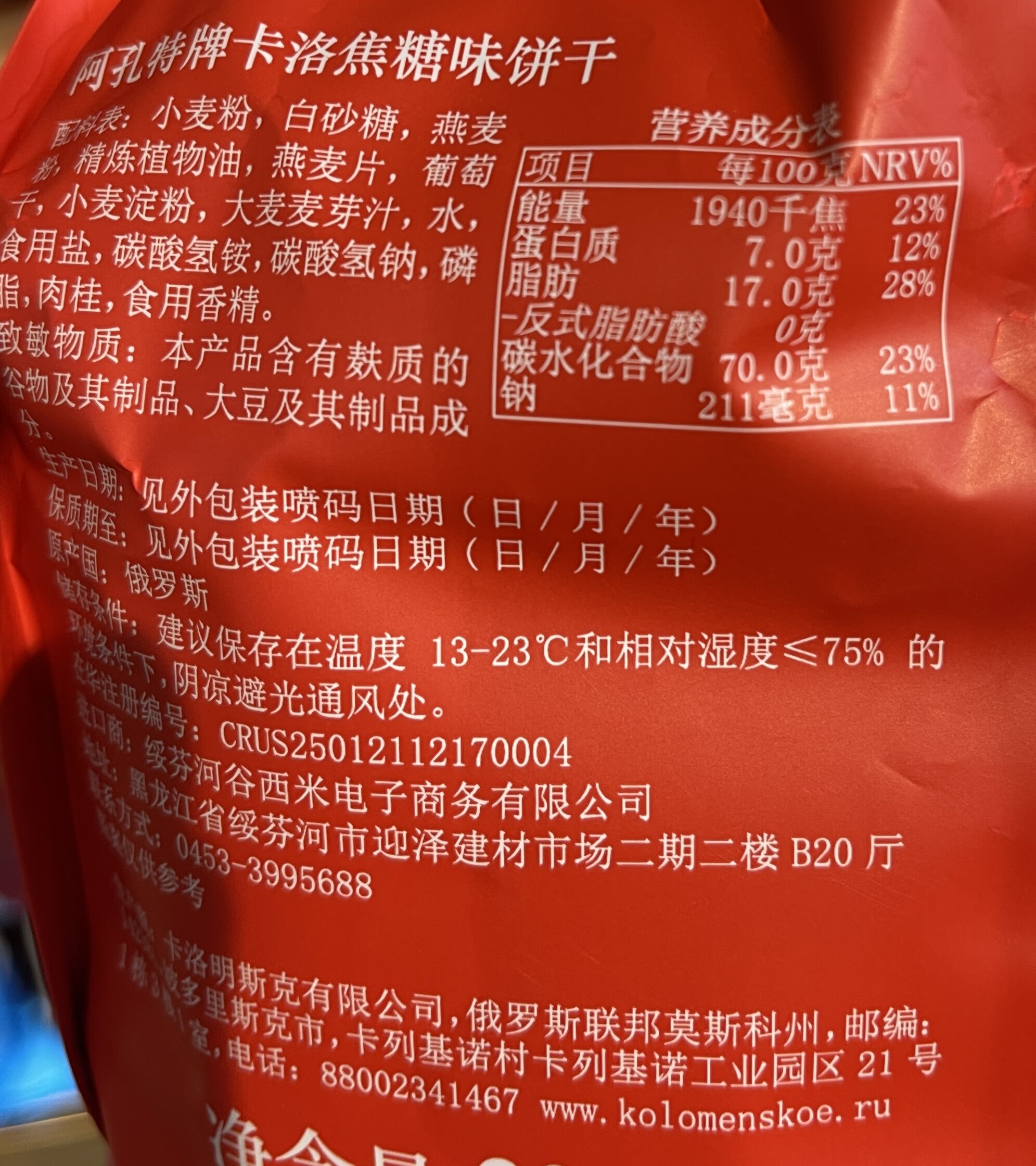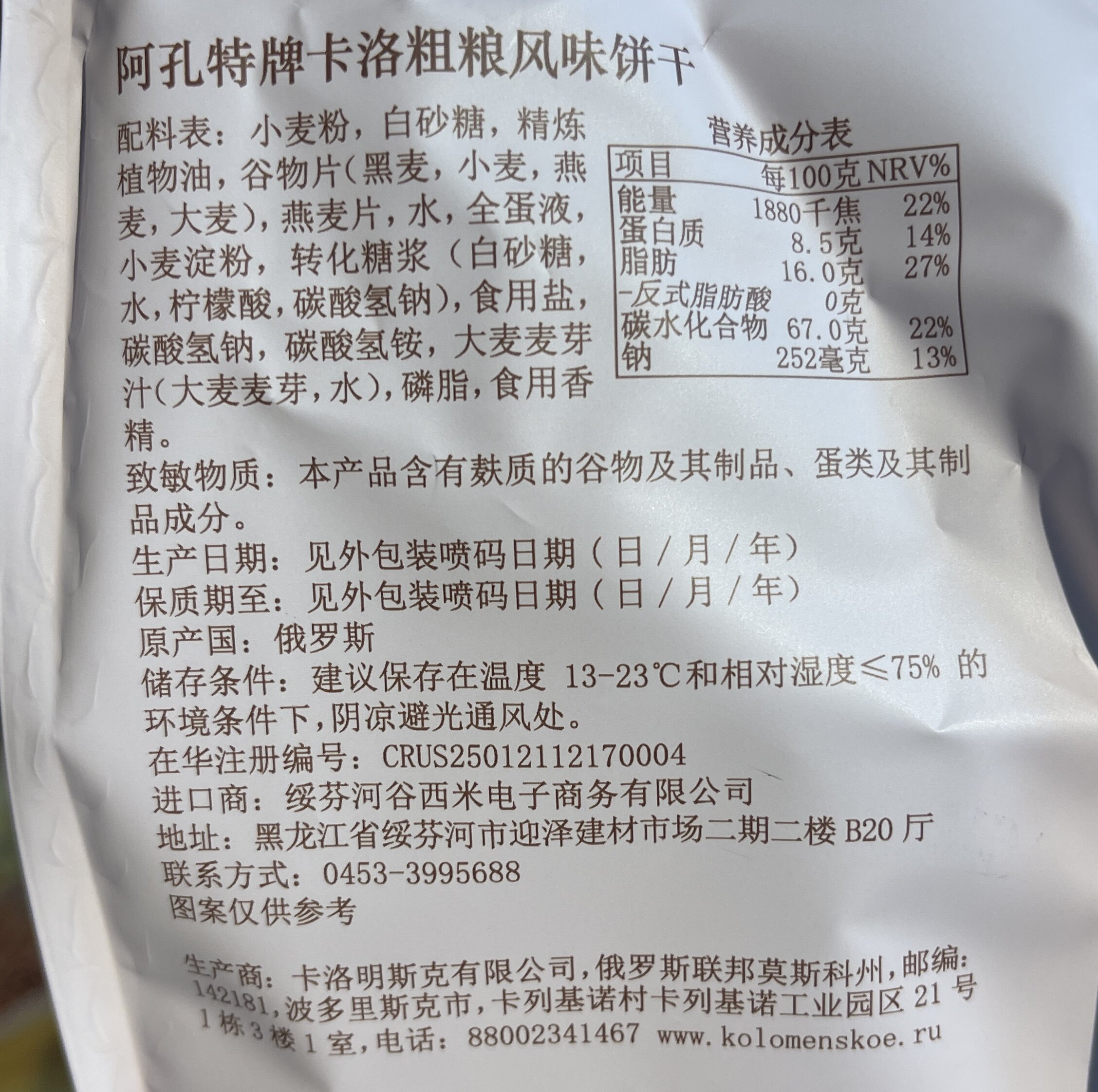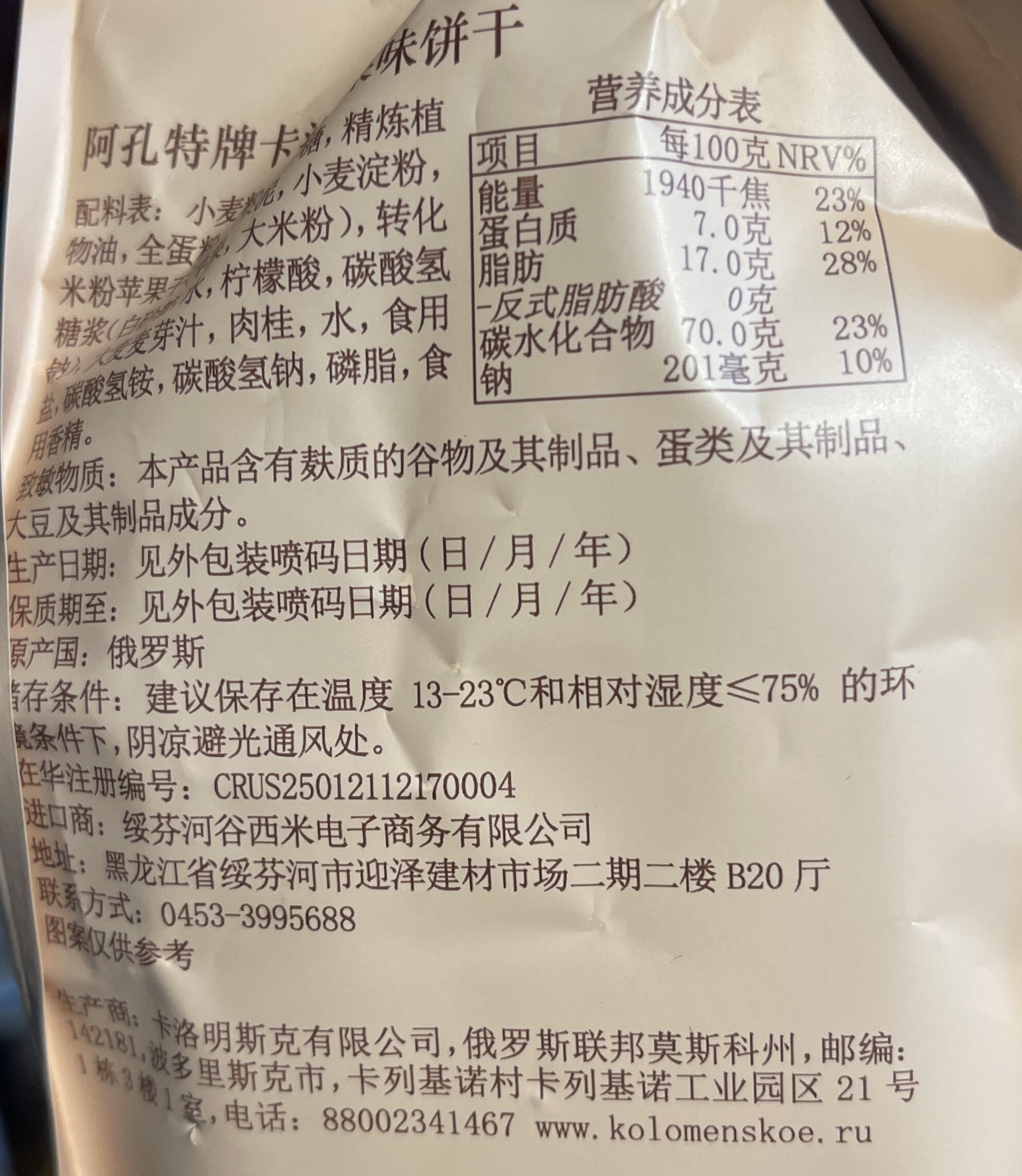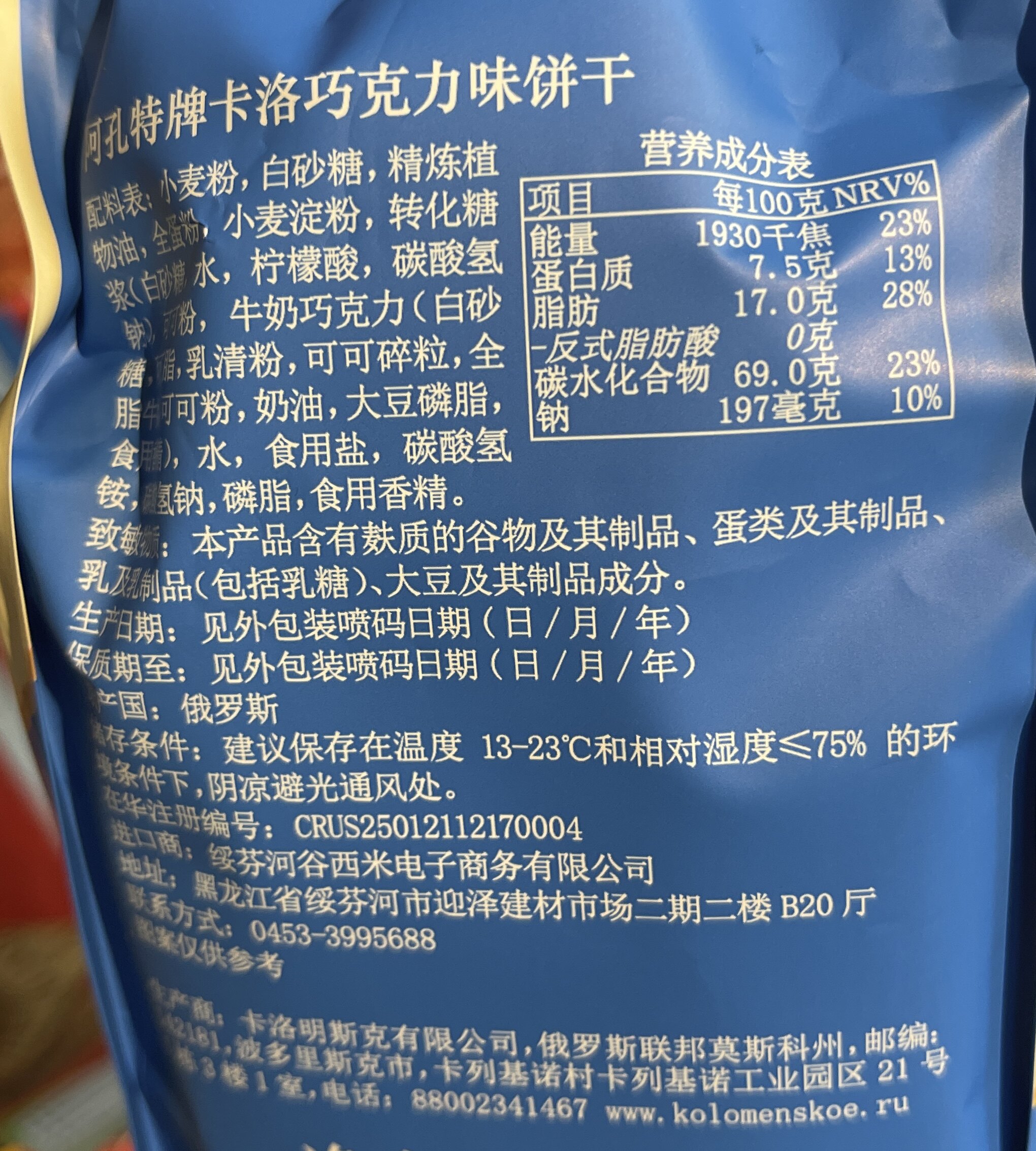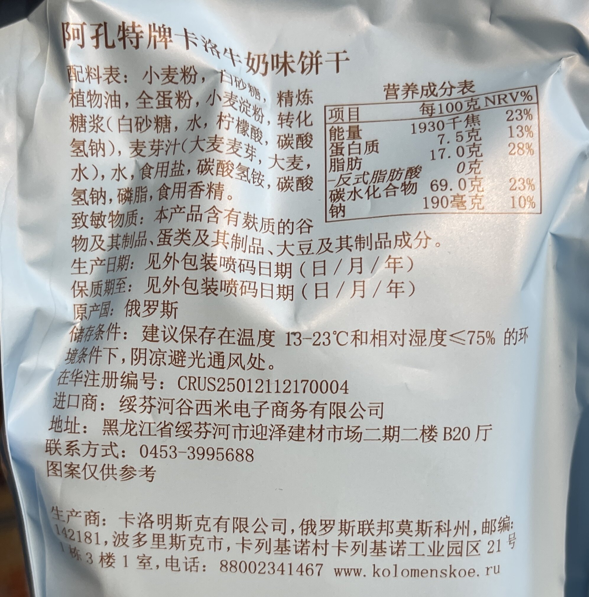 俄罗斯进口阿孔特牌安布列利瓦夫饼干66g