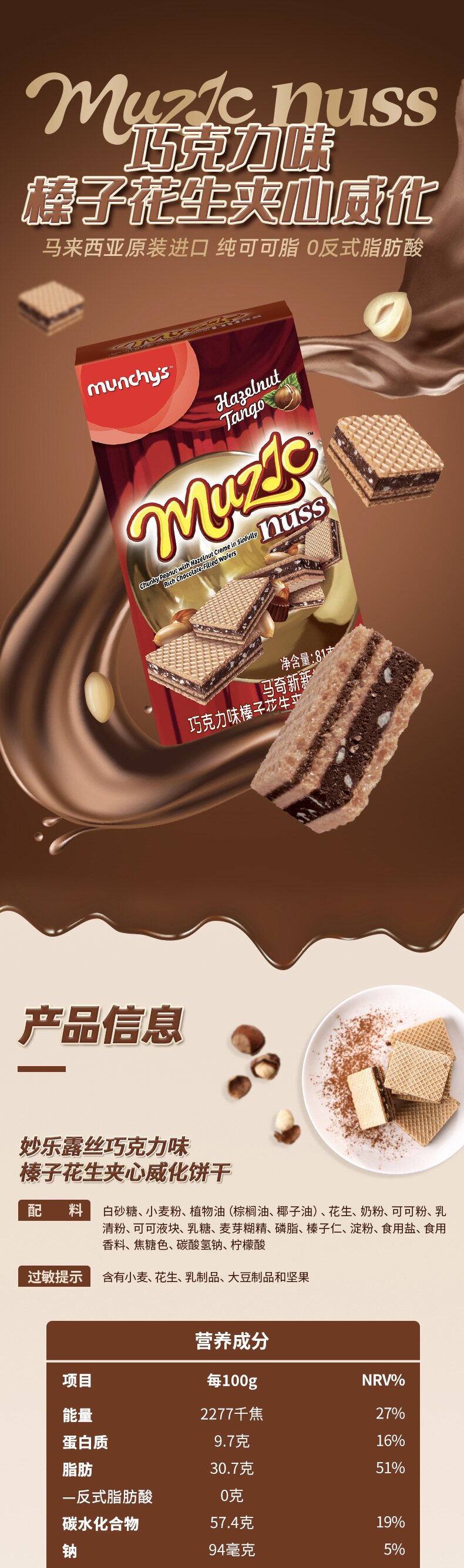 马奇新新进口巧克力注心威化蛋卷