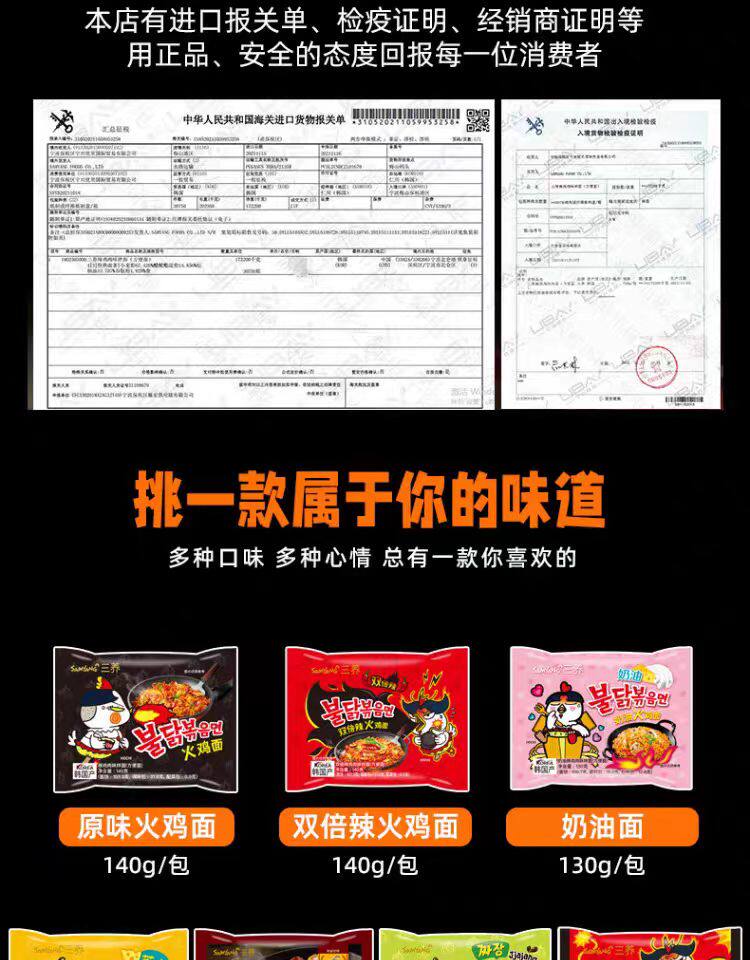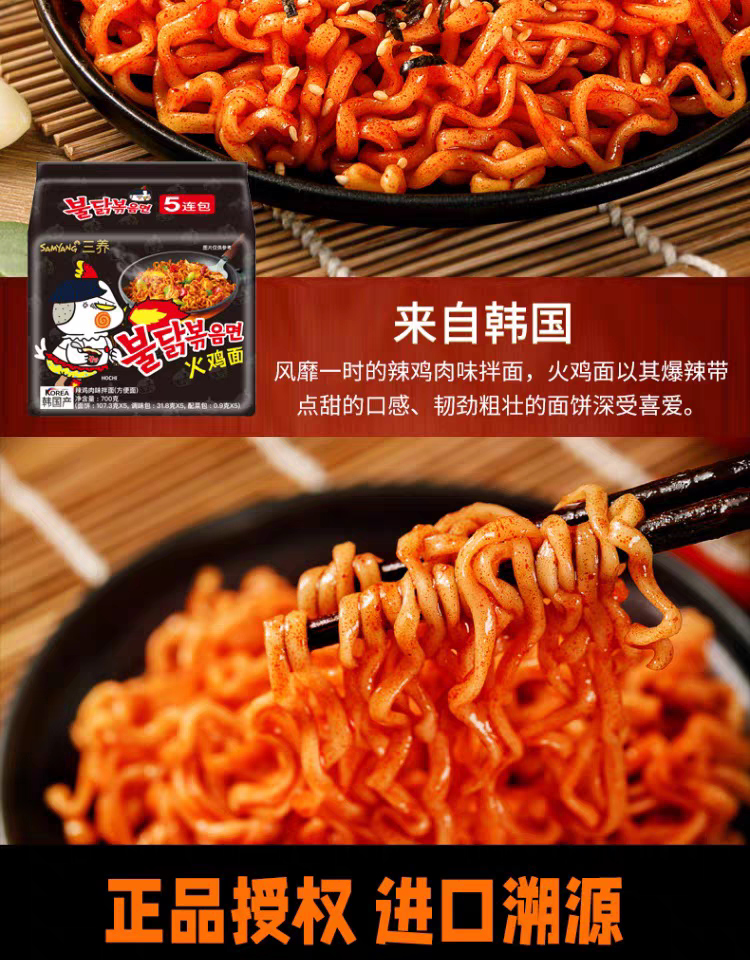 三养双倍辣鸡肉味拌面140g*5袋
