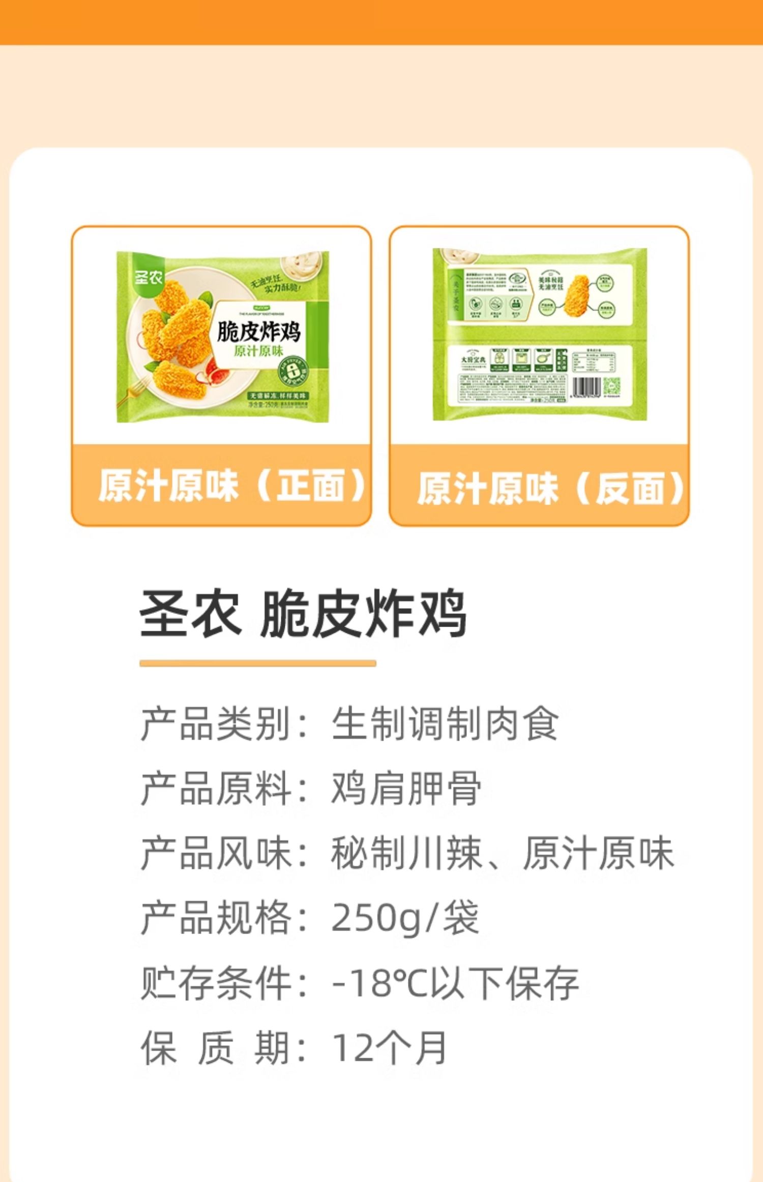 圣农原味鸡米花350g