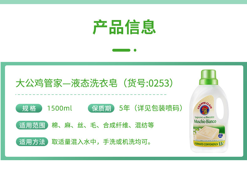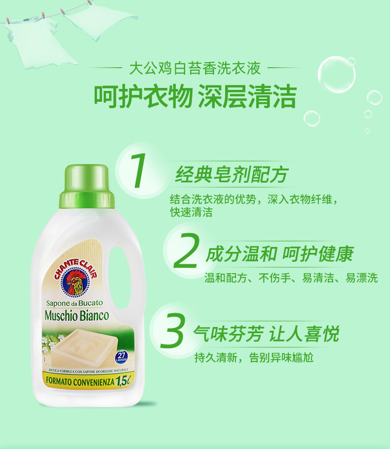 意大利进口大公鸡管家液态洗衣皂(白麋香)1500ml